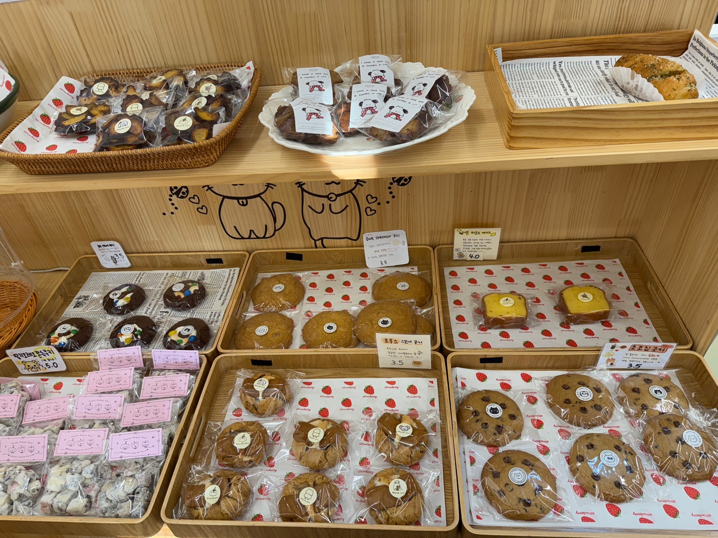 특히 핑크색 냉장 진열대 안 귀여운 쿠키들은 눈으로만 봐도 즐겁습니다.