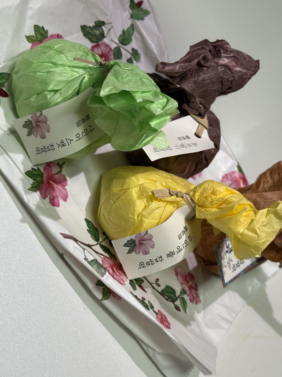한지로 정성껏 감싼 포장 하나하나가 작품이에요.